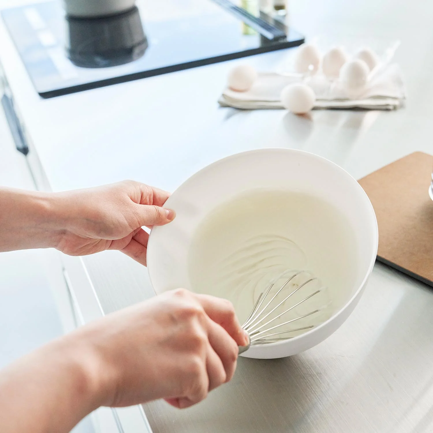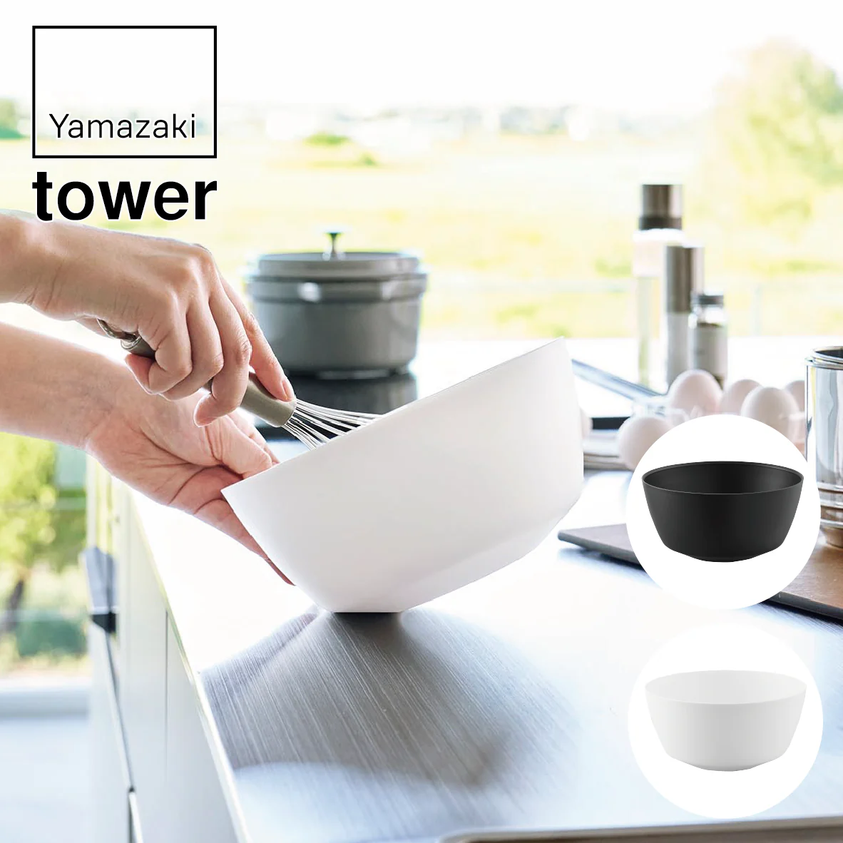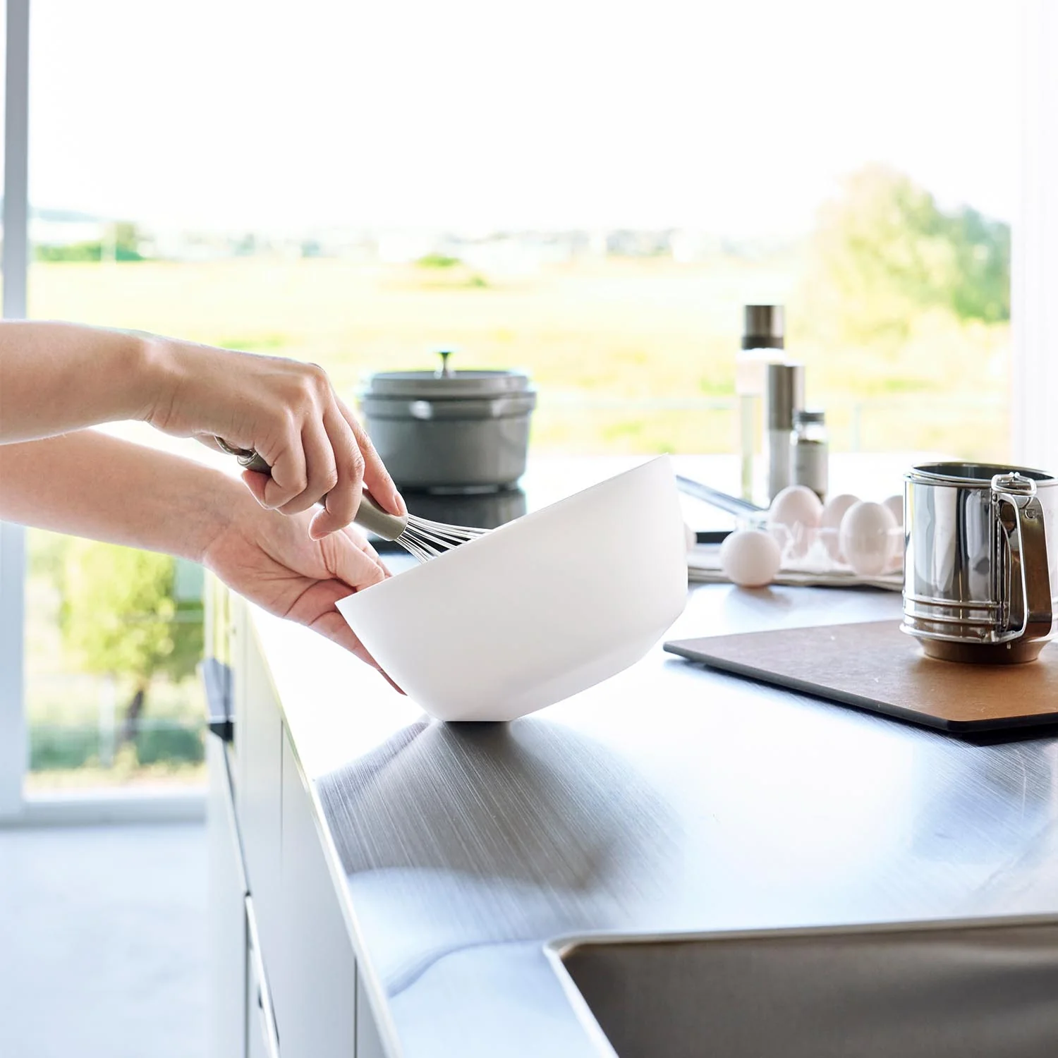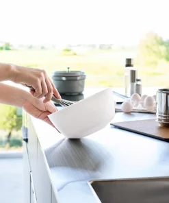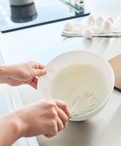斜めに傾けて軽く手で持つだけで安定して混ぜやすい調理ボウルMサイズ