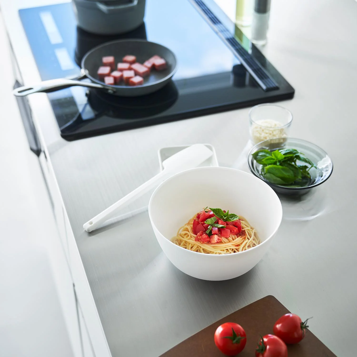 食卓にそのまま出して器としても使えるスッキリとしたデザインで、洗い物を減らすことができます。ラップを掛けてそのまま電子レンジOK。温野菜や下ごしらえに便利です。